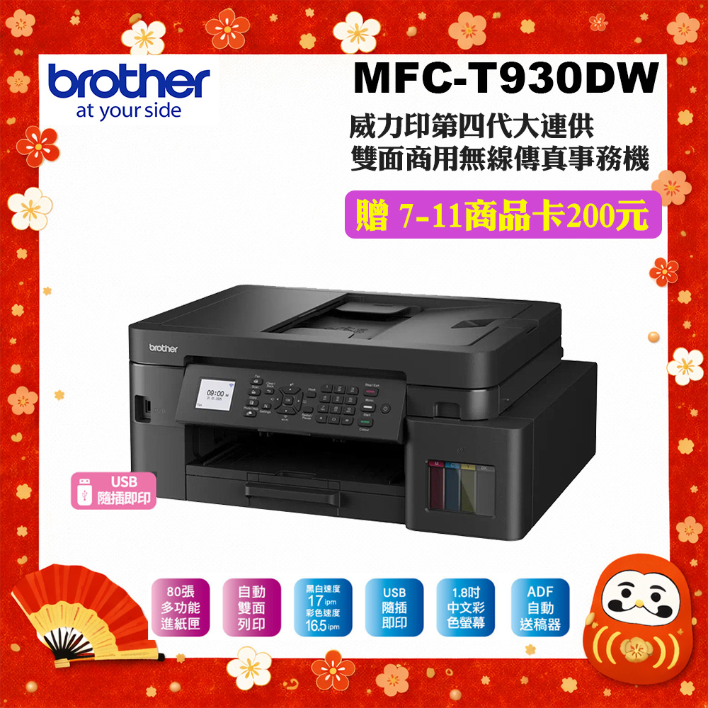 【下單即贈全聯禮券1000元】Brother MFC-T4500DW大連供A3多功能複合機