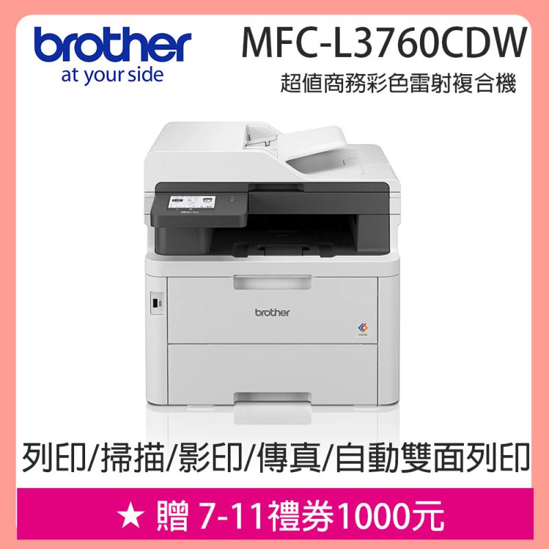 brother MFC-L3760CDW 彩色雷射多功能複合機 3760CDW ︱Wi-Fi無線列印︱影印/掃描/傳真四合一(贈7-11禮券1000元)