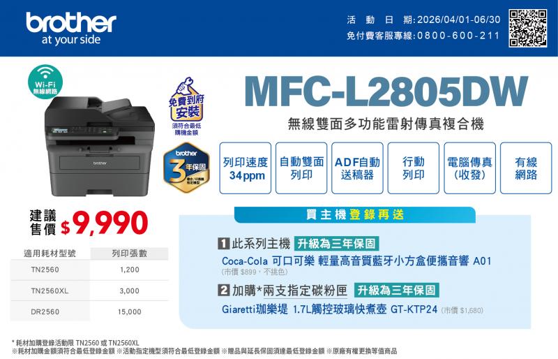 ※產品促銷活動請以Brother官網(www.brother.tw)為主