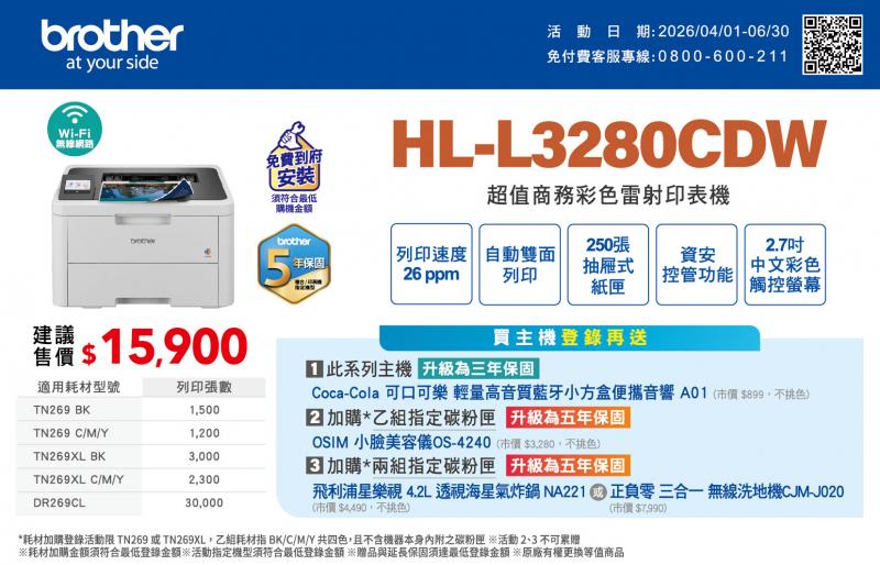 ※產品促銷活動請以Brother官網(www.brother.tw)為主