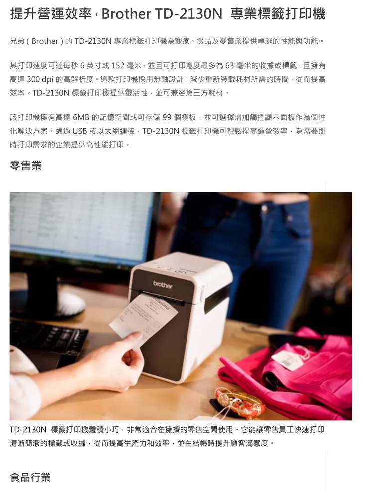 brother TD-2130N熱感式網路型高速標籤列印機