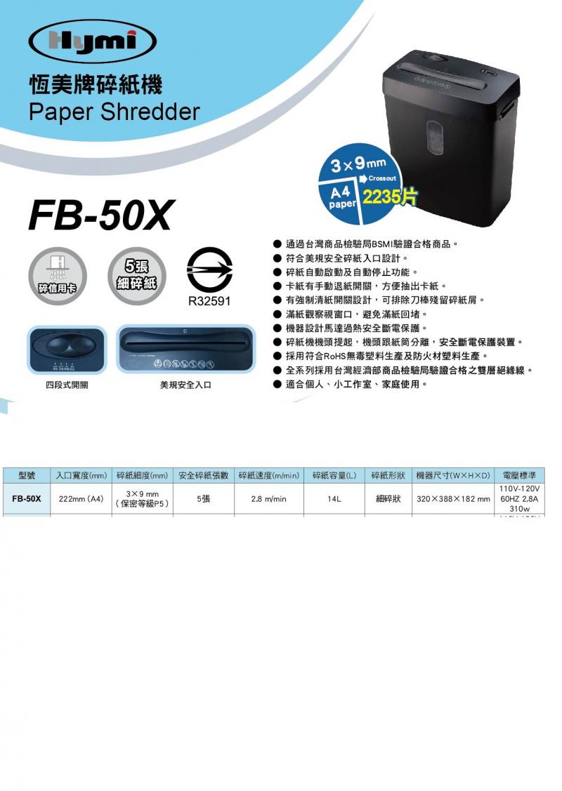 【Hymi】恆美牌 FB-50X 細碎型碎紙機