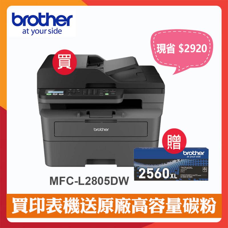 📣現省$2920元📣【買機器送原廠高容量碳粉TN-2560XL*1】brother MFC-L2805DW 無線雙面黑白雷射傳真複合機+TN2560XL