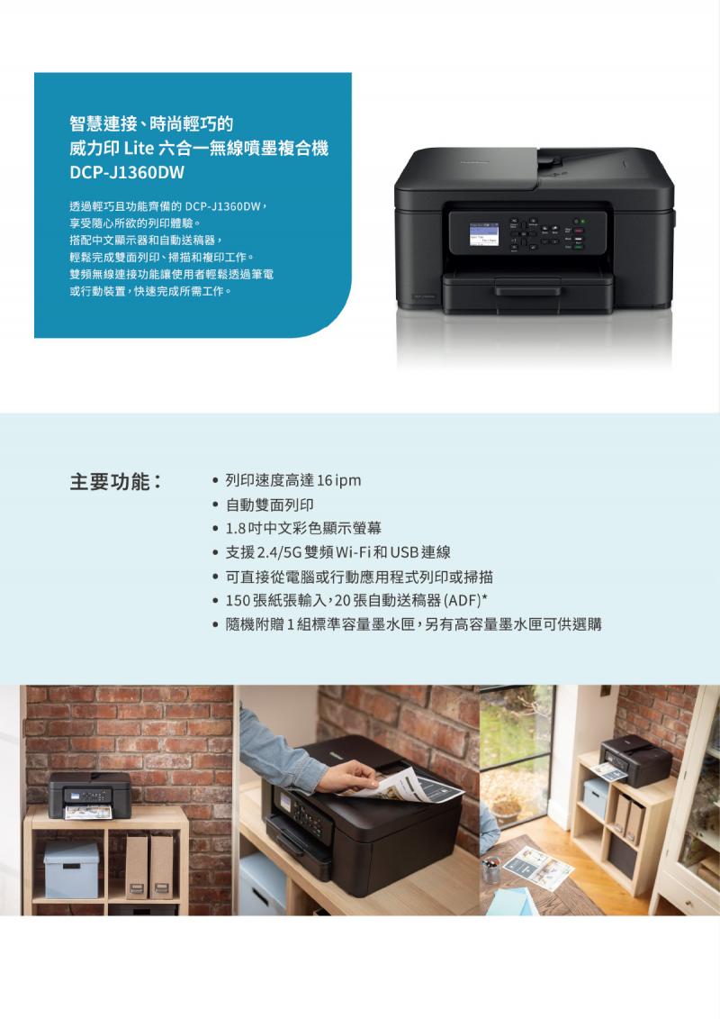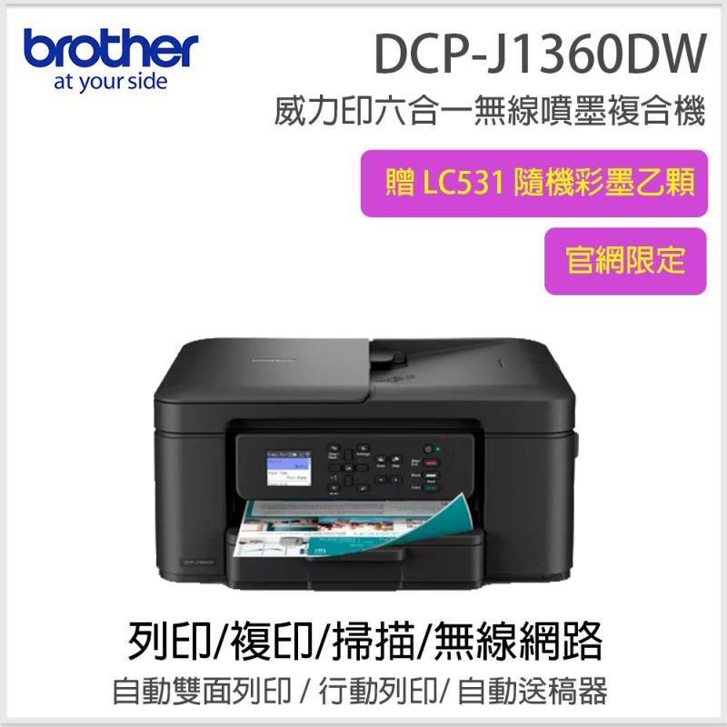 Brother DCP-J1360DW 【贈LC531隨機彩墨乙顆】威力印Lite六合一無線噴墨複合機(雙面列印/複印/掃描) J1360+LC531*1