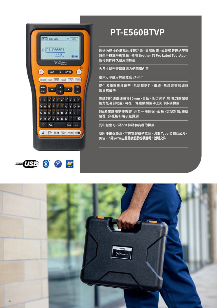 PT-E560BTVP 工業用手持式標籤機(網路配線/工業廠務/智慧宅/AI/商用大印量客製化)