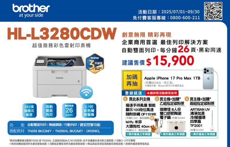 ※產品促銷活動請以Brother官網(www.brother.tw)為主