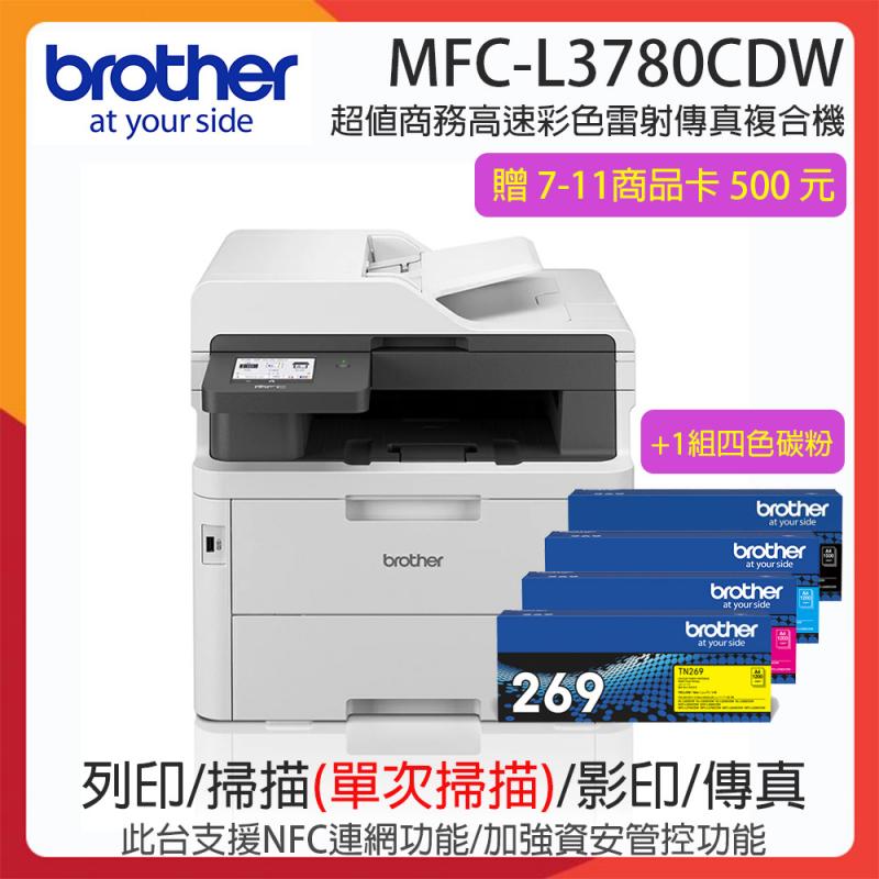 brother 【搭1組四色標準容量碳粉】MFC-L3780CDW 雙網全雙面彩色雷射傳真複合機 3780CDW+TN269 BK/C/M/Y 贈7-11商品卡500元