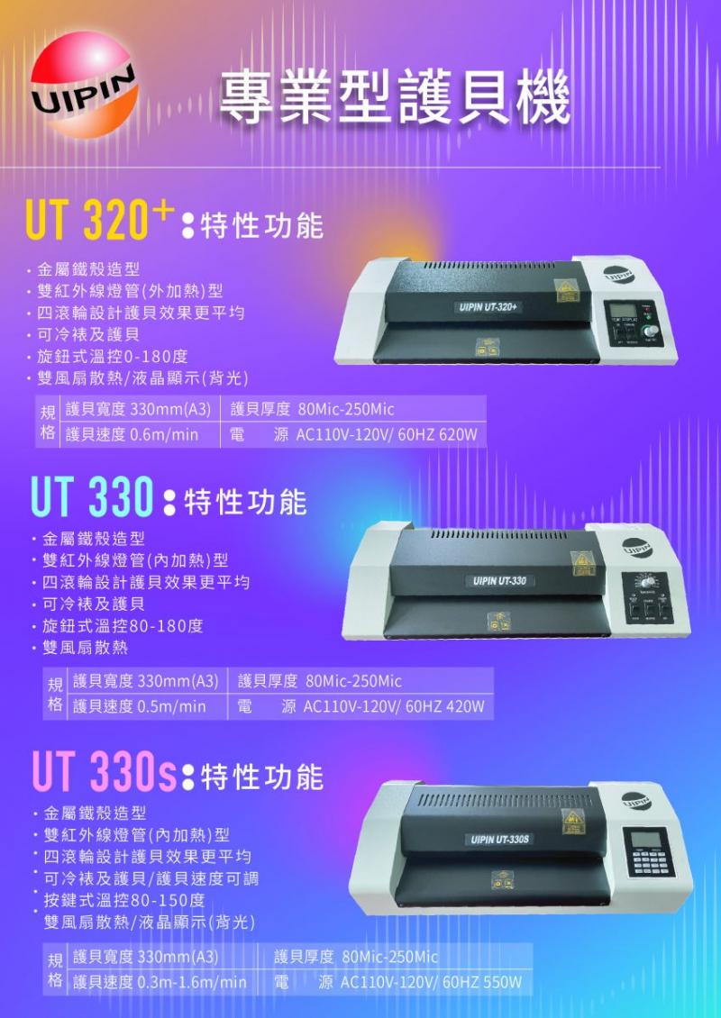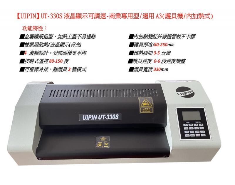 【UIPIN】UT-330S液晶顯示型可調速度-商業專用型(適用A3護貝機/內加熱式/雙紅外線燈管)
