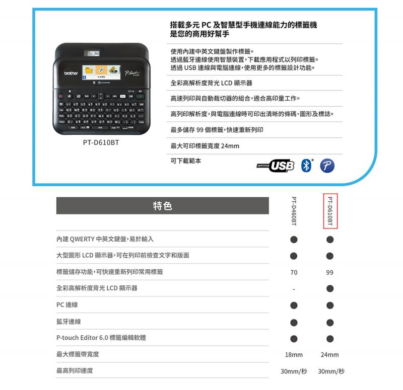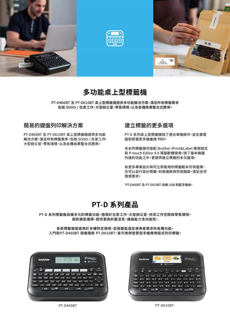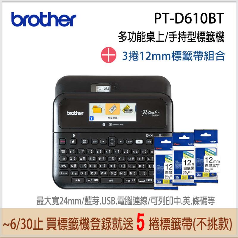 超值組【brother】PT-D610BT專業型彩色背光螢幕標籤機+3捲(12mm)標籤帶組合(PT-D610BT+TZe-231x3)_五年保固