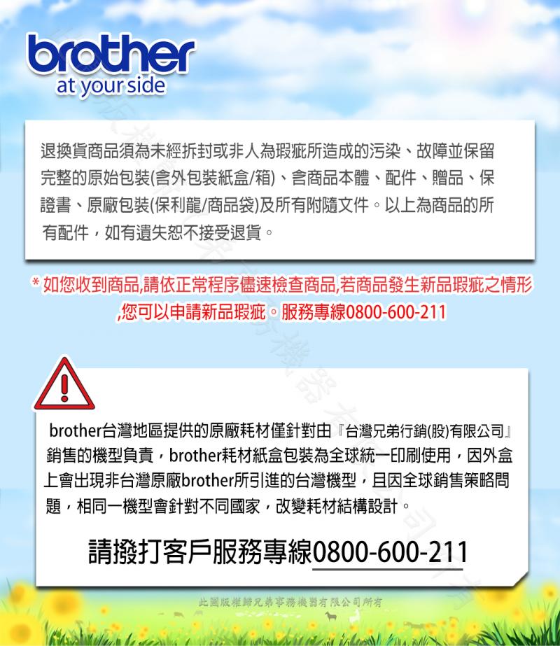 6. 所有贈品以實物為準,圖片僅供參考;本活動贈品出貨時若遇停產、缺貨…等不可抗力因素而無法正常出貨時,Brother 有權得以其他等值商品替代。